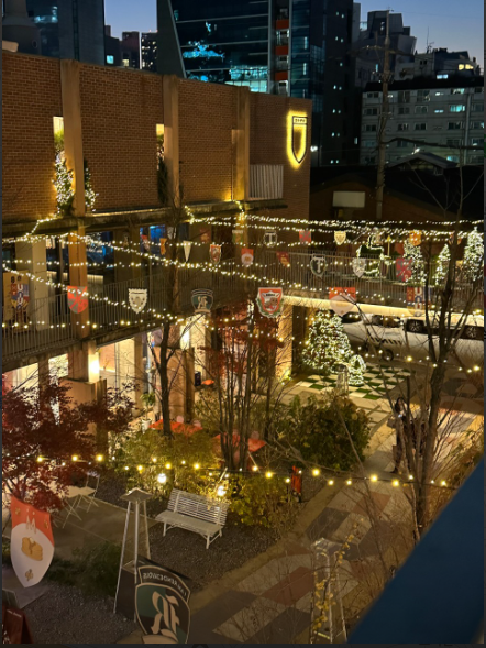 - 외부 테라스: 크리스마스 시즌에는 트리가 놓여 있어 연말 분위기를 물씬 느낄 수 있습니다.