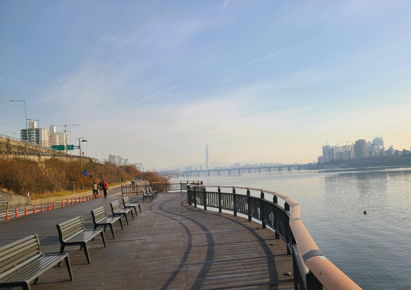성수구름다리는 한강과 롯데타워를 배경으로 노을이 아름답게 펼쳐지는 곳입니다. 일몰 시간에 방문하면 황금빛 윤슬과 함께 독특한 사진을 남길 수 있습니다.