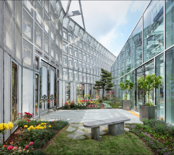 - 내부 공간: 높은 천장과 철제 구조물이 만드는 공간감이 인상적입니다.