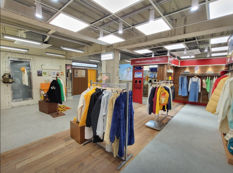- 특징: 코닥 브랜드와 콜라보한 의류 및 액세서리 판매, 필름 카메라 전시